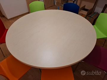Tavolo circolare in legno e metallo, diametro cm 155, altezza cm 72,5 circa, come da foto.