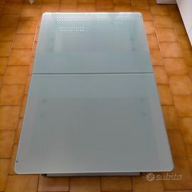 Calligaris Eleven tavolo in acciao con ruote e vetro temperato. Regolabile in altezza ed allungabile. DIMENSIONI L. 115 cm —> 160 P. 75 cm A. 70 cm Guide vetro nuove Ruote nuove