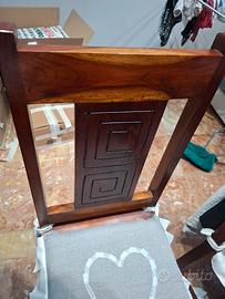 Questo set da pranzo, composto da un tavolo e sedie coordinate. E realizzato in legno massello, con diverse fonti che lo identificano come palissandro (Sheesham) acacia, o teak e tenuto a nuovo io quando lo comprato ho pagato 289 euro a sedia e sono 6 sedie e tavolo compresso di 2 prolunghe 2400 euro vendo tutto per 1800 euro per piu informazioni possibili mio nr e 3510514487