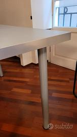 Pianale grigio perfetto, gambe metalliche un po' ossidate (sostituibili da IKEA o Leroy Merlin, si fissano con 5 viti tutto attorno).