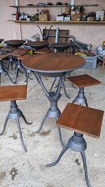 Vendo coppie di 3 elementi composte da 1 tavolo e due sedie e rispondo di un totale di 5 tavolini bassi che verranno venduti singolarmente perché avevano delle altre sedie abbinate e 5 tavolini alti con 2 sedie ogni tavolino, inoltre dispongo di un totale di 8 sedie a sé che possono essere unite ai tavoli alti oppure comprate a parte.