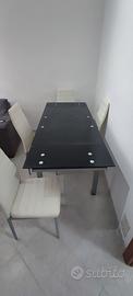 Tavolo con 4 sedie allungabile 4/6 posti in vetro
