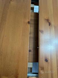 Vendo tavolo in legno estendibile inserendo una tavola di legno riposta all’interno del tavolo stesso (10 posti) o richiudibile rimuovendone un’altra (4 posti). Il tavolo è in buono stato, possiede dei graffi rimuovibili con i giusti prodotti per il rinnovo del legno.