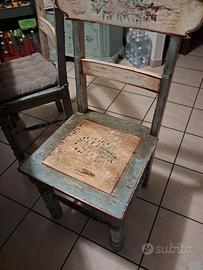 Tavolo in legno massello +4 sedie della stessa tipologia con decorazioni floreale dimensioni 160x80 cm ha 2 prolunghe