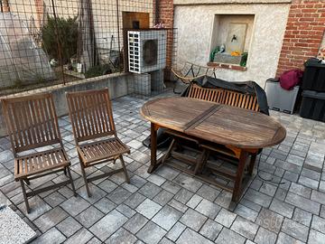 Tavolo con 4 sedie da esterno in legno