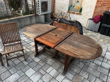 Vendo tavolo con 4 sedie da esterno in legno allungabile, in ottime condizioni,nessun difetto o ammaccature Disponibile dal 28/04 Per ricerca: salatto da giardino,tavolo giardino