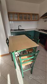 tavolo con 4 sedie di colore verdi più frigo bombato prezzo bomba entrambi 170 euro