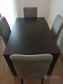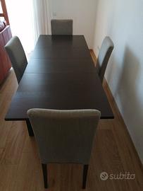 Vendo tavolo rettangolare IKEA modello BJURSTA, colore Rovere / Marrone completo di 4 sedie IKEA tutto in ottimo stato. + 2 fodere di ricambio (Nuove nella confezione)
