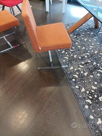 TAVOLO CON BASAMENTO IN NOCE MASSICCIO PIANO IN CRISTALLO € 1400 MOLATO 4 SEDIE ALIFAX € 250 CAD.