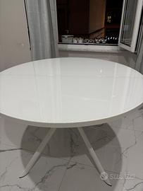 Vendo tavolo rotondo in vetro allungabile con 4 sedie a poltroncina in velluto grigio. Acquistate 2 anni fa. Vendo per problemi di spazio.