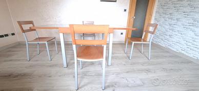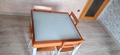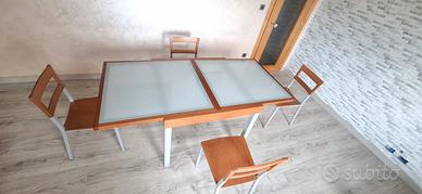 Tavolo con 4 sedie. Misura 90x90 chiuso, 180x90 aperto.