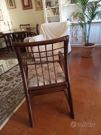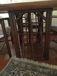 tavolo molto bello in rattan con 4 sedie sempre in rattan fatto artigianalmente. Adatto come tavolo da pranzo e anche in veranda fuori casa. eventualmente ci sono anche le scaffalature in rattan e vetro da abbinare al tavolo.