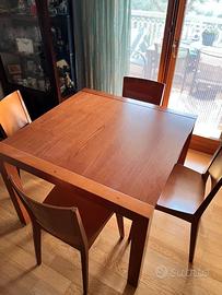 Tavolo in legno con 4 sedie in ottime condizioni, quadrato 1mx1m, estendibile 1,57mm
