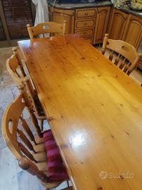 Tavolo rettangolare con 6 sedie in legno di abete. Misure tavolo 190 cm x 78 cm, altezza 78 cm