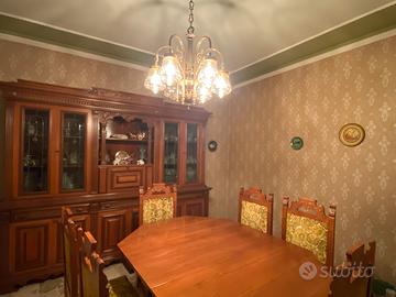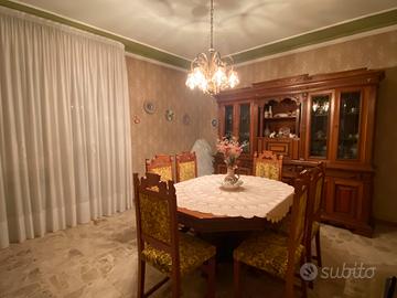 Tavolo perfetto con 6 sedie allungabile e mobile vetrina doppia per salone stile antico.