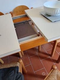 Tavolo da cucina lunghezza 120 allungabile a 165, larghezza 75. Robusto con gambe e struttura in rovere massello chiaro, condizioni più che buone da vedere. Con 6 sedie sempre in rovere massello pesanti e indistruttibili, con seduta in paglia naturale, su alcune la paglia è in alcune parti consumata, ma comunque senza buchi e volendo si possono impagliare. Ovviamente non spedisco solo ritiro in zona Mestre Ve. Prezzo trattabile