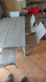 Tavolo e 6 sedie , tavolo 85x130 allungabile di 50 . Tutto in buone condizioni , il tavolo ha una macchia (Attack caduto ) visibile nella foto .