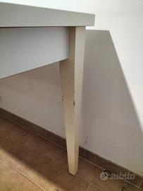 Tavolo bianco con 6 sedie. Dimensioni 180x80, altezza 79 (cm), allungabile fino 200. Segni di usura sulle gambe