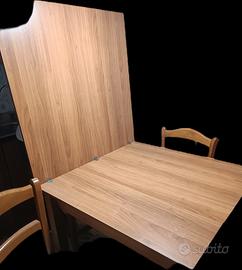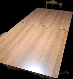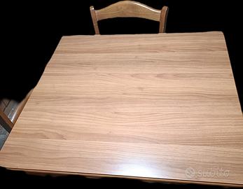 Tavolo da pranzo in legno quadrato 90x90. Apertura a portafoglio abbinato con 6 sedie con seduta impagliata.