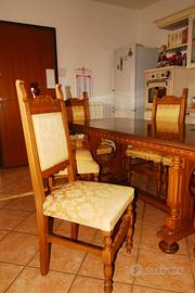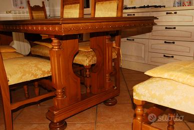 Bellissimo tavolo vintage anni 70, completo di 6 sedie. Se non vi piacesse il colore in tutti i negozi di tinta esistono quelle speciali per mobili, un lavoro semplicissimo che si può fare personalmente, senza l'ausilio di artigiani. Potete personalizzarla o farla dello stesso colore di altri arredi.