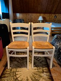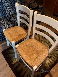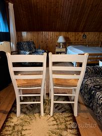 Vendo tavolo in legno bianco perfette condizioni tranne quei piccoli difetti che ho messo nella foto. Misura: 140x80 con 80 cm di altezza Comprende anche una prolunga di 40cm cosi da arrivare a 180cm di lunghezza massima Le sedie sono in legno con seduta in paglia intrecciata, condizioni impeccabili! Le sedie sono 6 ma per questioni di comodità ho fatto le foto solo a 2. Prezzo leggermente trattabile