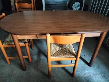Tavolo ovale 6 posti con n. 8 sedie impagliate. Lunghezza 170, altezza 78, profondità 90