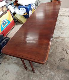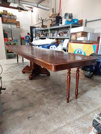 Tavolo francese molto largo perché è pensato per poter mettere piatto di portata nel mezzo e con allunghe arriva circa 5 metri e con me da più di venti anni aspetto offerte non ridicole da ritirare in loco