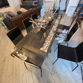 Vendo tavolo con banco da falegname completamente ristrutturato esente da tarli struttura integra; misure del piano in vetro temperato 210x85x0,5 ritiro a carico dell’ acquirente viste le dimensioni e la fragilità dell’oggetto.Zona Minturno-Formia-Latina prezzo intrattabile
