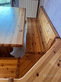 Tavolo con cassapanca e sedie in legno