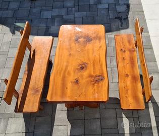Bellissimo tavolo da interno ed esterno con 2 cassepanche , in legno massello , usato pochissimo