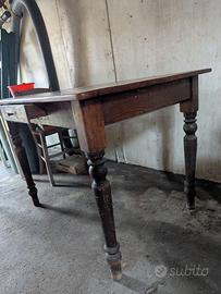 Tavolo con cassetto in legno massello, dimensioni 110 x 78 cm; da restaurare, in discrete condizioni, come da foto. Solo ritiro