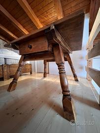 Tavolo con cassettone in abete legno massello