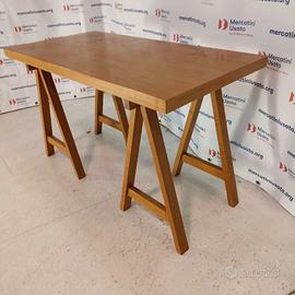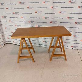 Tavolo con cavalletti Vintage. Struttura in legno impiallacciato. Presenta