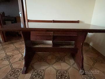 Lunghezza 157 sia tavolo che panca. Il tavolo ha due prolunghe. Cassapanca con spazi per riporre. Vendo causa trasloco.