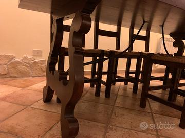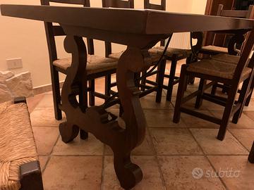Vendo tavolo in legno massello dimensioni 250X90 con gambe a lira in ferro battuto e 8 sedie euro 900,00