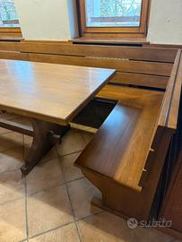 Tavolo in rovere massiccio completo di giropanca e 12 sedie di legno impagliate Misura 350cm x 86cm Smontabile Ritiro sul posto