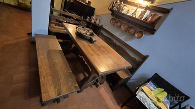 Vendo tavolo per taverna con relativo giropanca e altra panca oltre alla mensola in foto. Misure indicate. Non spedisco. Ritiro a carico dell'acquirente