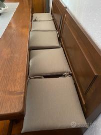 Vendo tavolo in legno composto da sei sedi più panca da quattro posti.