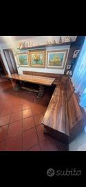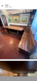 tavolo 90x250 ,con angolo panche seduta alzabile e spazio interno , legno massiccio