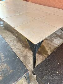 Tavolo con panche in ferro e mattonelle x esterno