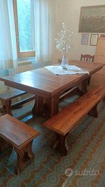 Vendo splendido tavolo di falegnameria con panche, interamente realizzato in legno d'ulivo (misure 260x95).