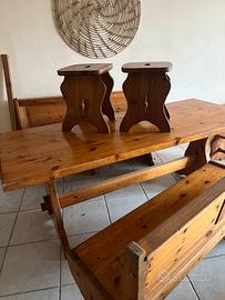 Tavolo con 2 panche stile tirolese piu due sgabelli