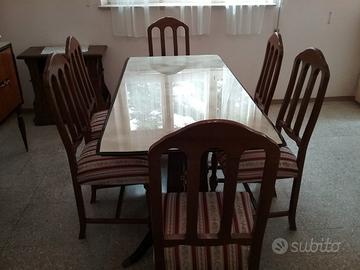 Tavolo con piana in vetro, dimensione 170×80×80, possibilità di n. 6 sedie imbottite e tappezzate, con prezzo separato € 15,00 cad.