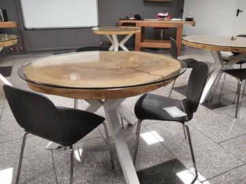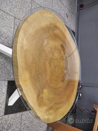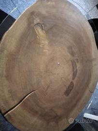 Tavolo con misura h 78 diametro (ovale) da 90/110 naturale cedro del libano spazzolato circa 100 anni contando tutti gli anelli spessore 6 cm il cui viene ricavato dalla parte bassa della pianta con chiodo vecchio di rinforzo in modo che non spacchi nel tempo e poi sotto fresato per inserire il telaio struttura autoportante in ferro con tubolare 7 x 7 con gamba spezzettata con fori di fissaggio al piano e sotto foto per tappo in gomma per non rovinare il pavimento, spazzolato e oliato il piano in legno e parte superiore top in vetro con sporgenza di circa 3 cm per lato ovale vetro trasparente filo lucido temperato sp. 1 cm. finitura laccata bianca liscio opaco (ral 9010) sulle gambe e oliato per top in legno. Una volta confermato viene fatto disegno cad in 3d per vedere proporzioni del tutto in quanto ogni pianta ha la sua misura e fattezza. il prezzo si intende franco fabbrica compreso di finitura imballo e piano in vetro iva non comprendente. tavolo già realizzato su commissione e venduto, non teniamo magazzino ma essendo i diretti produttori possiamo costruirlo in base alle proprie esigenze e misure che ognuno richiede. per dubbi e chiarimenti contattateci essendo i diretti produttori falegnami costruiamo su misura e specifiche del cliente. ASTENERSI RIVENDITORI E COMMERCIANTI