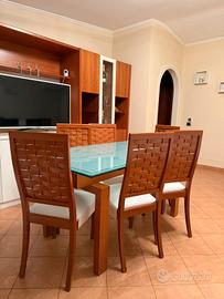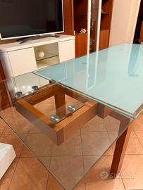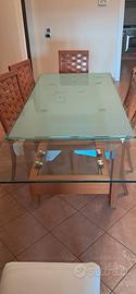 Tavolo con piano in cristallo, estensibile, completo di nr. 6 sedie, tutto di marca "Calligaris", come da foto. Non prevista spedizione