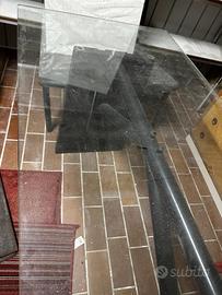 Tavolo da pranzo con piano in cristallo e gambe/base nera. È in ottime condizioni va solo spolverato e tolta qualche macchia di vernice. Per questo motivo cedo a prezzo simbolico rispetto al reale valore