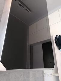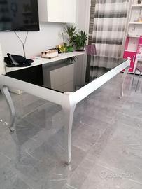 Vendo tavolo con piano in cristallo nero. Misure: 180 cm x 90 cm. Qualche segno di usura sulla struttura in legno. NON TRATTABILE.