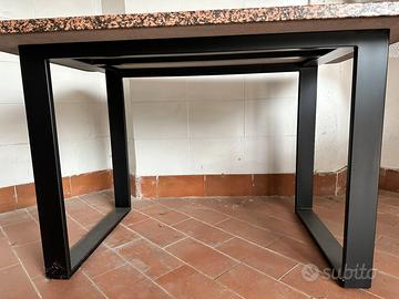 Vendesi splendido tavolo con piano in granito rosso lucido e base realizzata da fabbro in ferro verniciato nero. Misure 125x80 x 76 altezza