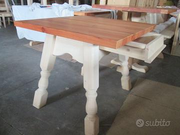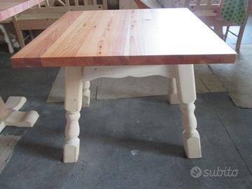 Tavolo con base a croce in abete e piano in larice spazzolato tutto legno massiccio. Misure 90x90 spessore 4 altezza 90 . Disponibili 9 pezzi. Oppure altro sempre 90x90 altezza 75 cm