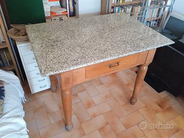 Tavolo 109x 80 cm con altezza 83cm, inlegno con piano in marmo
